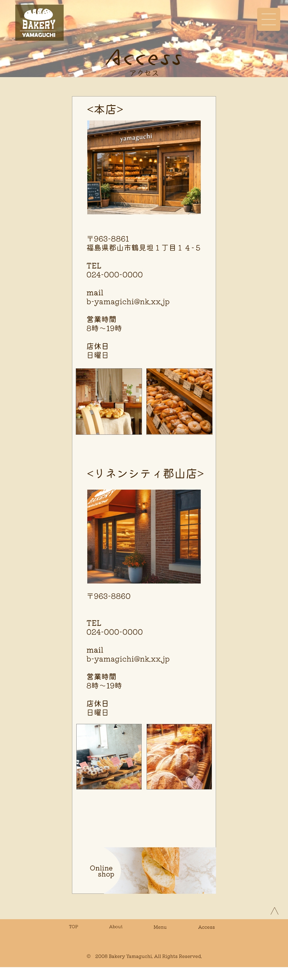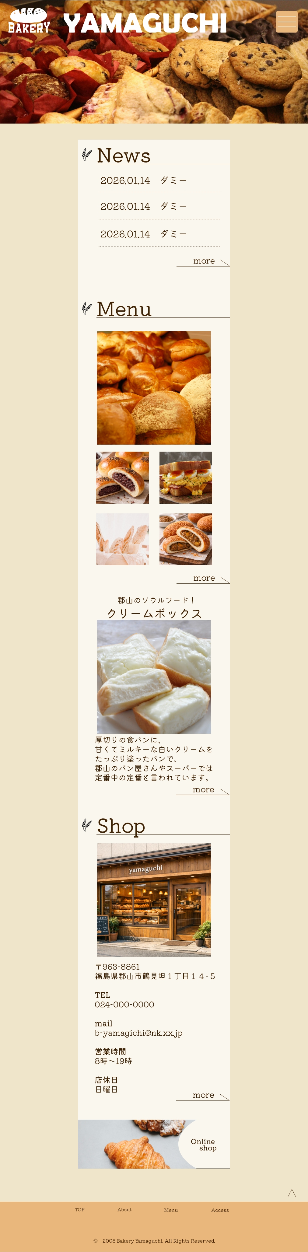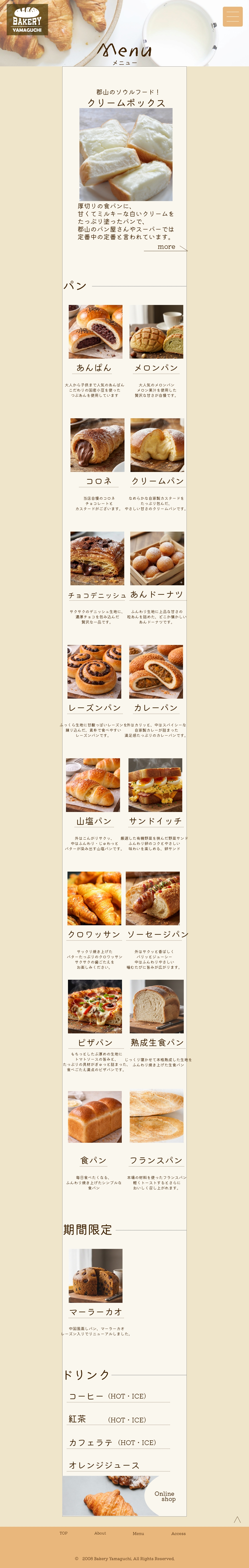 職業訓練の制作課題。「ベーカリーヤマグチ」のWebサイトを想定し、